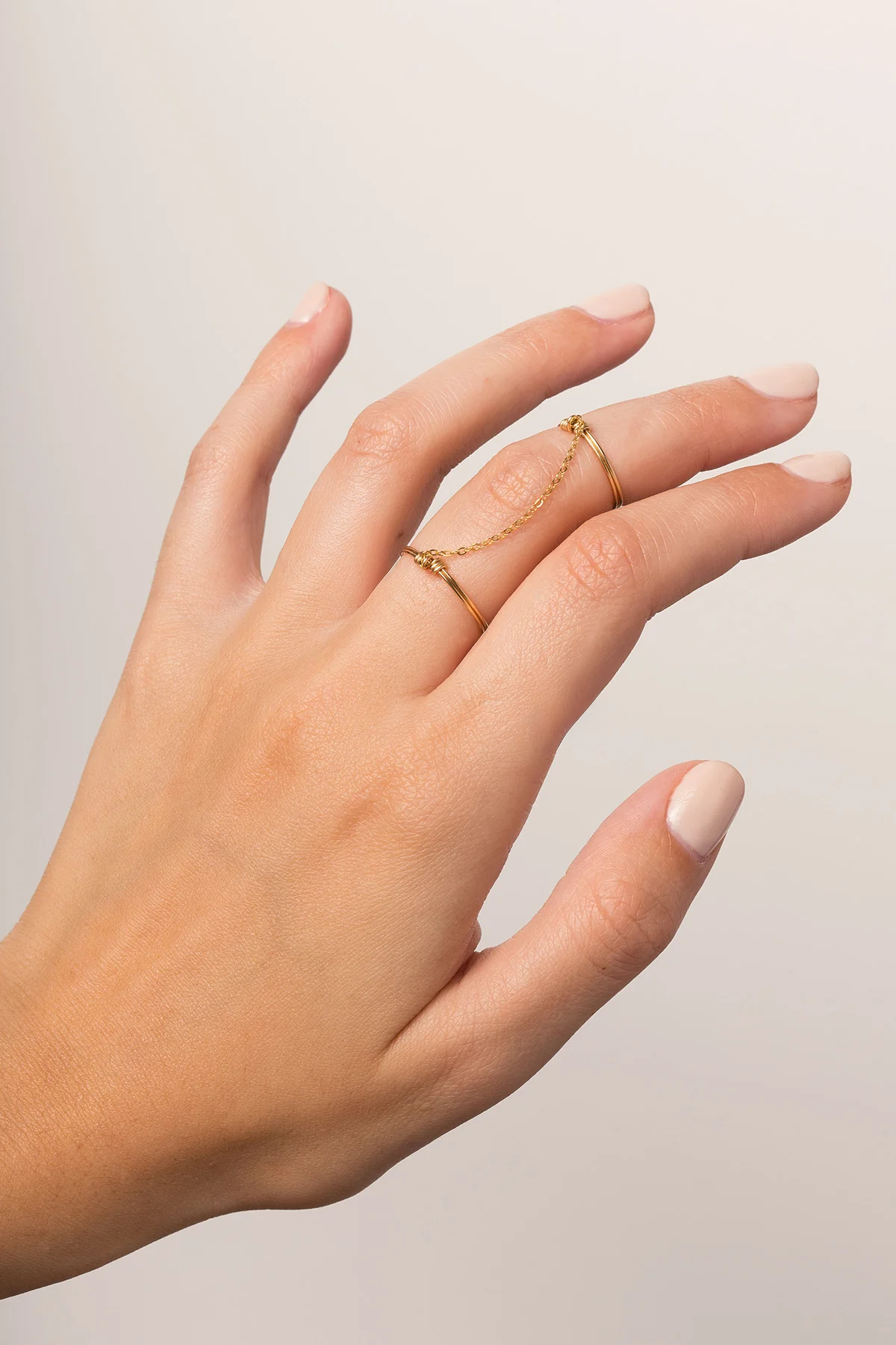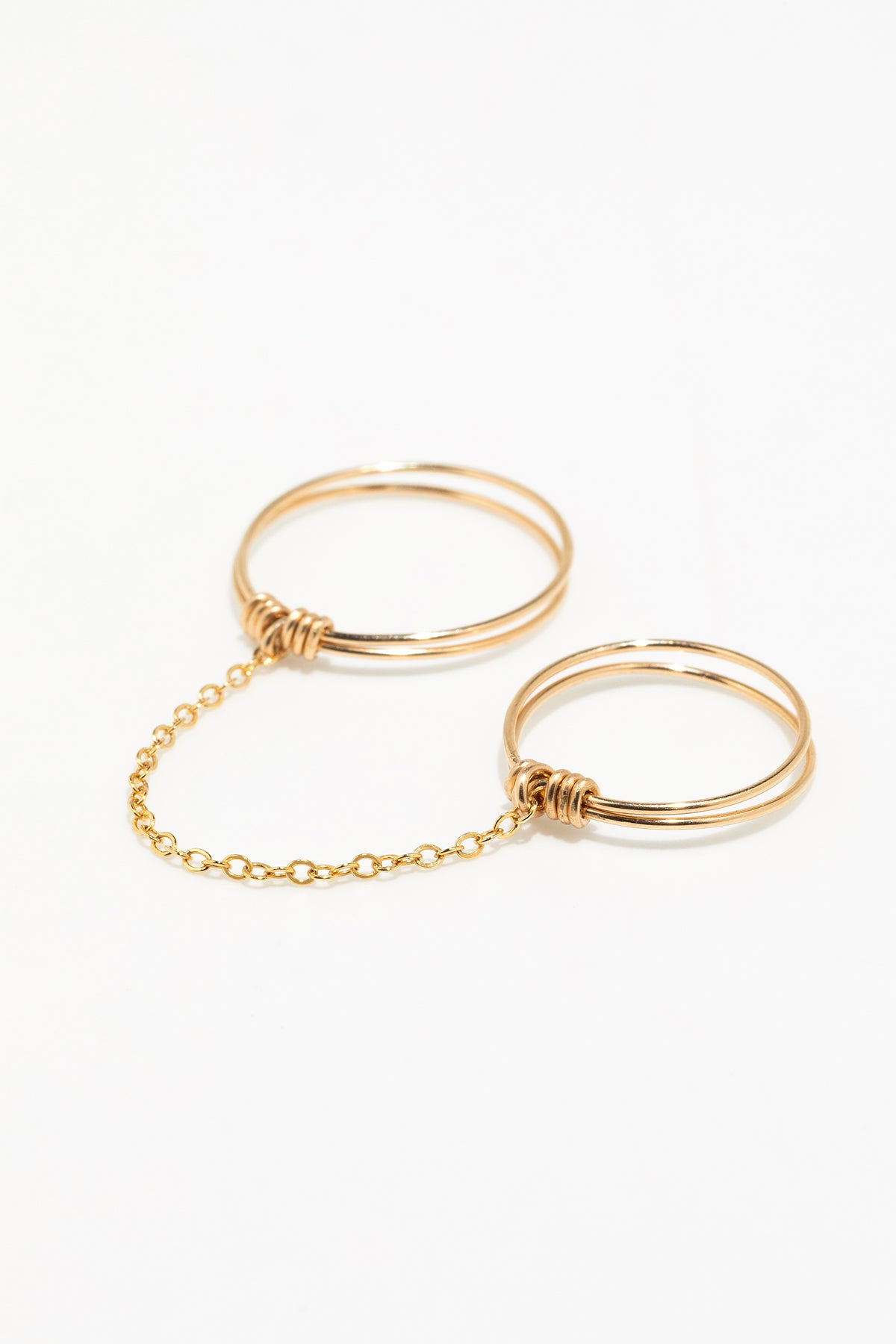 For the addicts of accumulation, we propose you two rings in one! The twin ring dresses up the whole finger, connecting a ring and its phalanx ring with a chain.