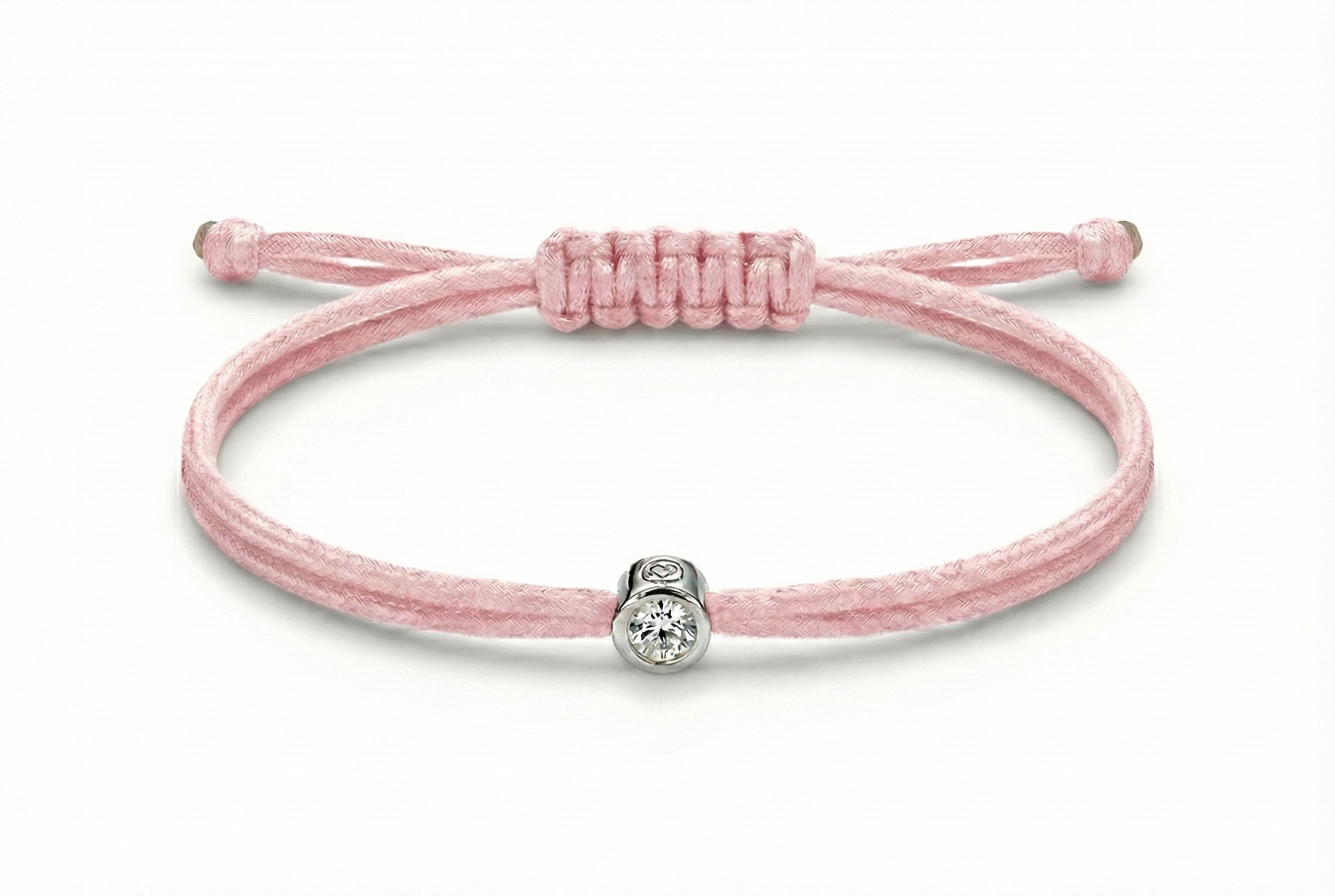 Our Cuty bracelet is distinguished by its hand-woven nylon cord, renowned for its softness, strength, and vibrant color. At its center, a round-cut lab-grown diamond, available in 0.05 carats, is delicately set in a polished 925 sterling silver setting. Thanks to its adjustable size, this piece combines elegance and modernity, enhancing both everyday outfits and special occasions.