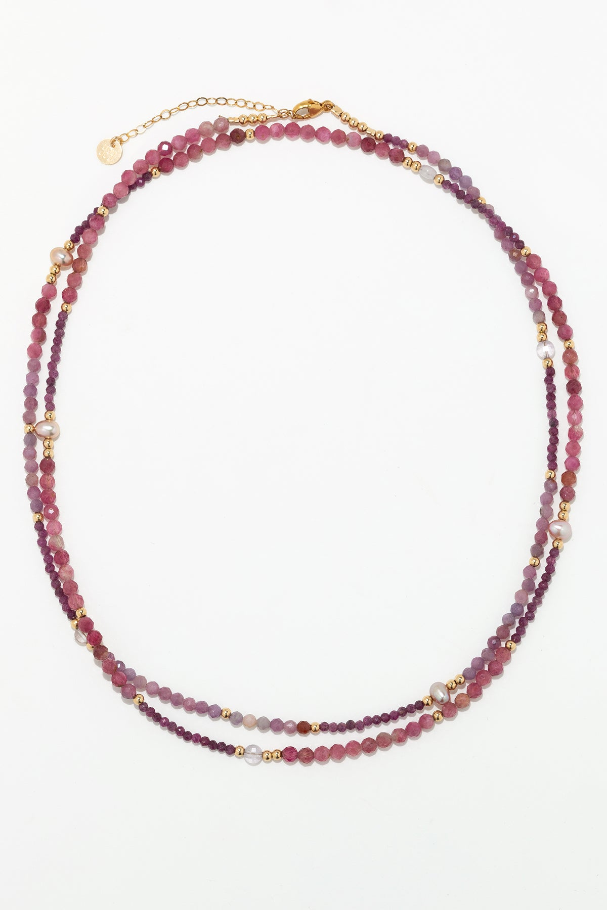 Stones: Pink cultured pearl, Ruby, Tourmaline, Jade
