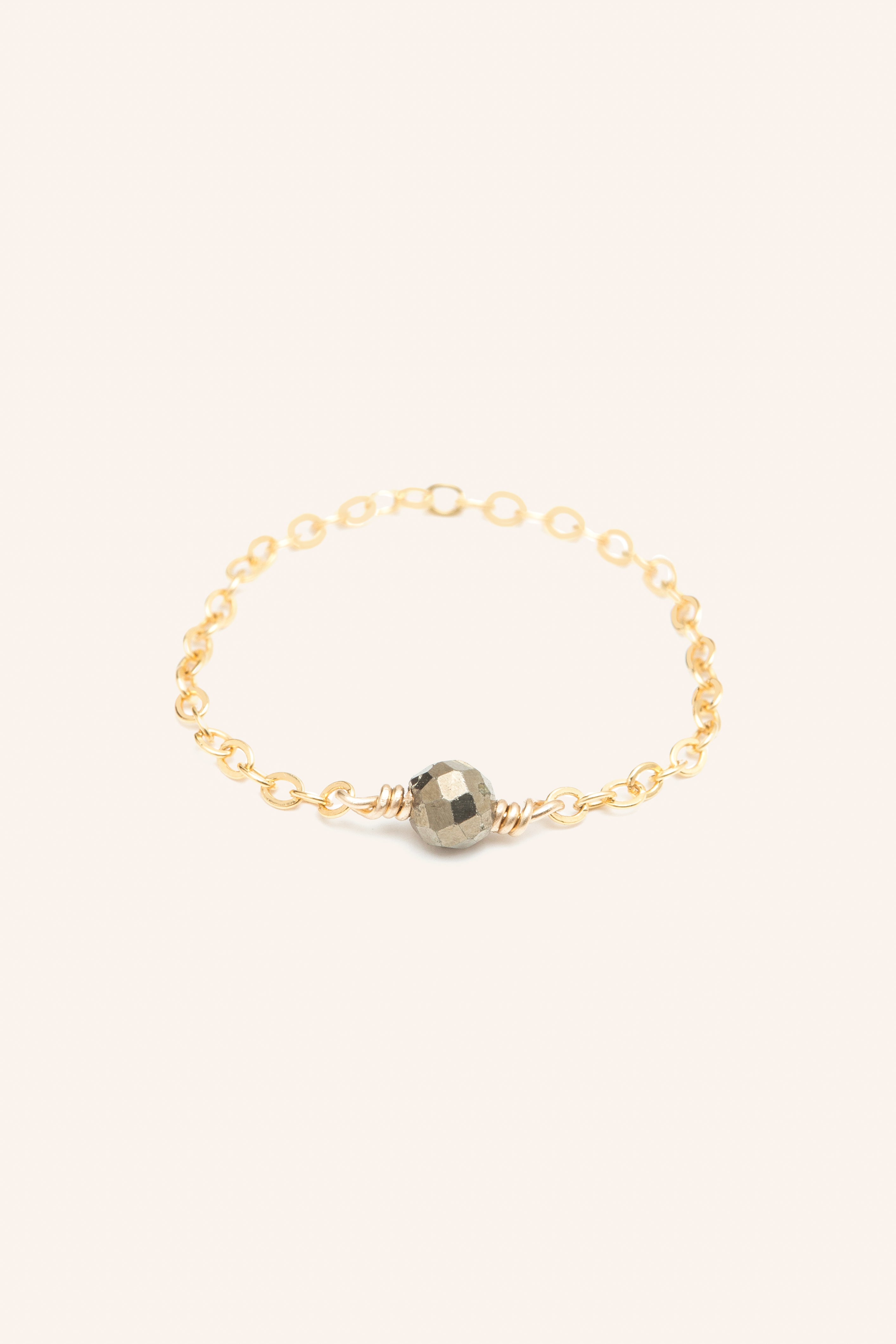 Iconic YAY jewelry, the Stella chain ring is reinvented each collection with new stones! It is composed here of a round, faceted pyrite, mounted on a gold chain.