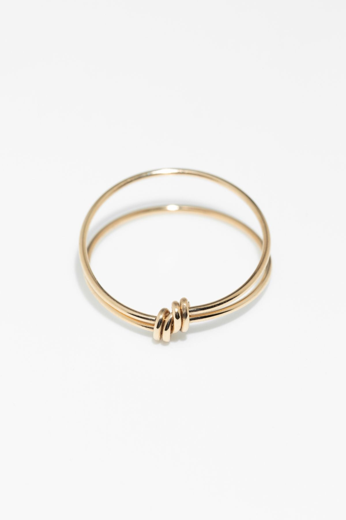 The Essentiel double ring is composed of two gold wire rings knotted together.