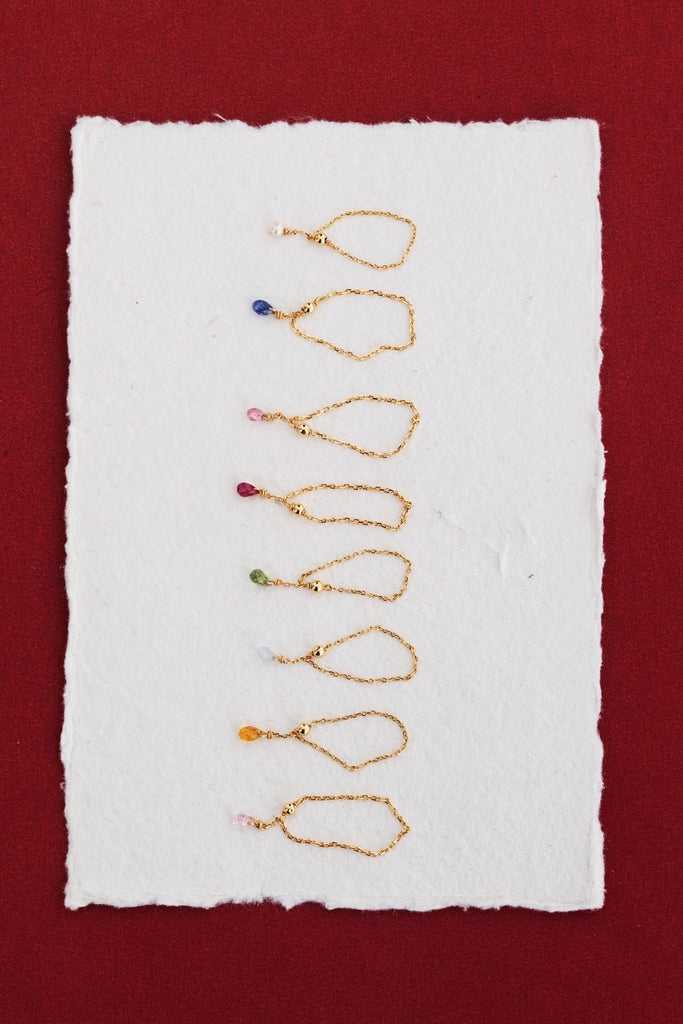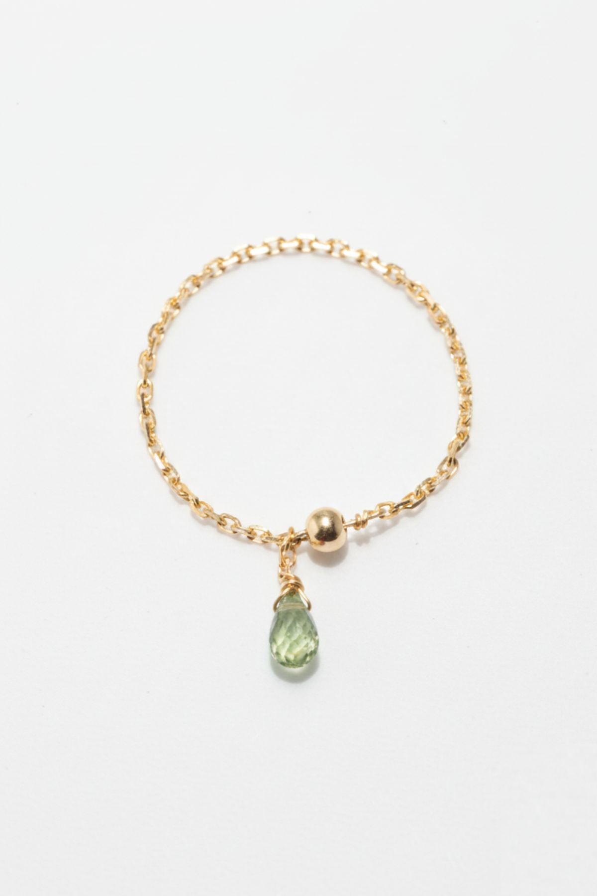 With its delicate design and suspended drop, the Mia drop chain ring captures the essence of minimalist elegance. Adorned with a light green sapphire, this piece adds a vibrant touch of color to your hand, perfect for those seeking to elevate their everyday style with subtlety.