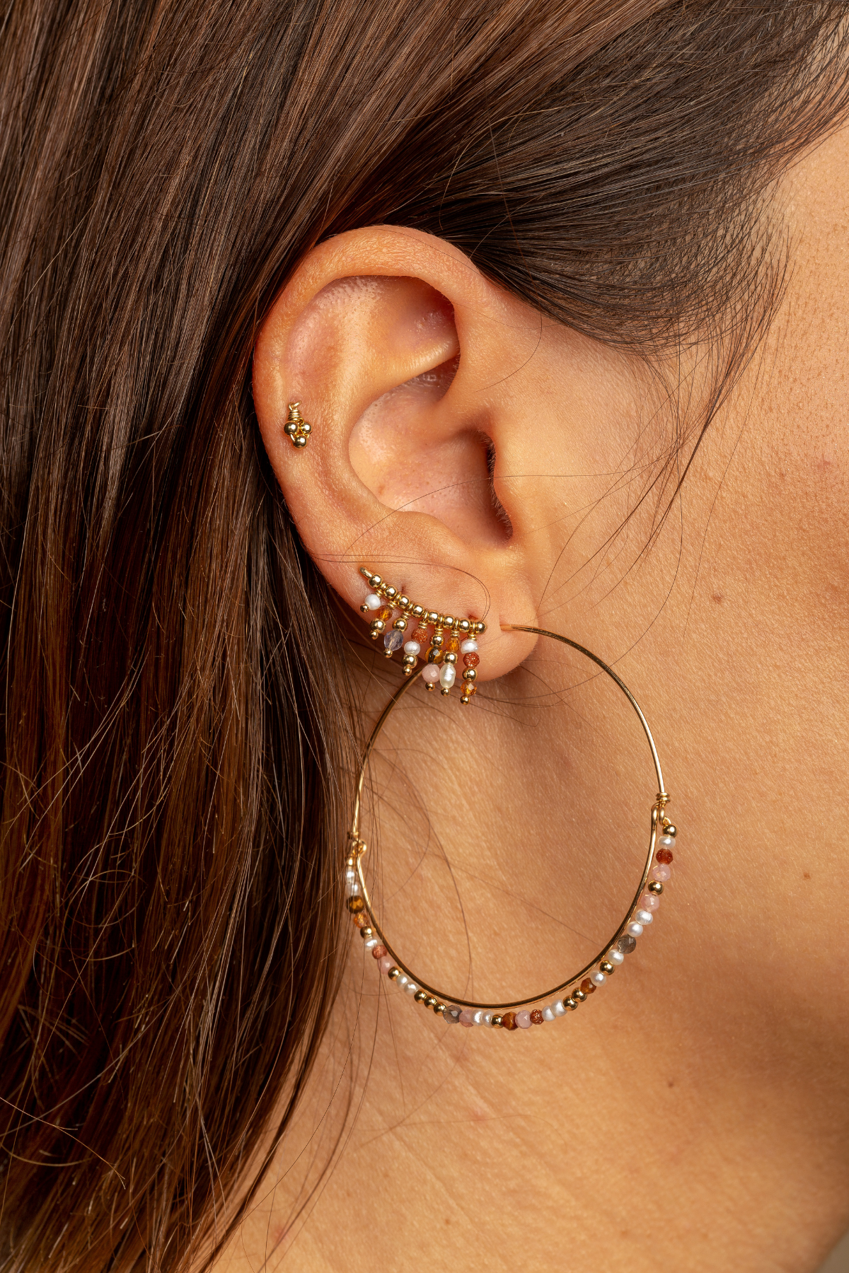 Small cascade of stones on the ear, the Queen fringe climber is composed of stones from the Coquillage range and round gold filled beads.