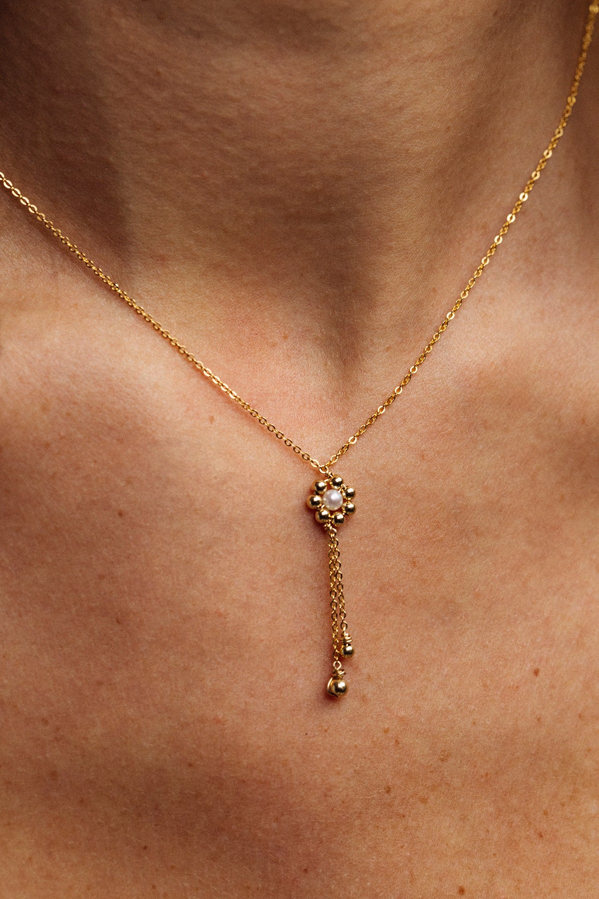 Daisy tie necklace - Cultured pearl