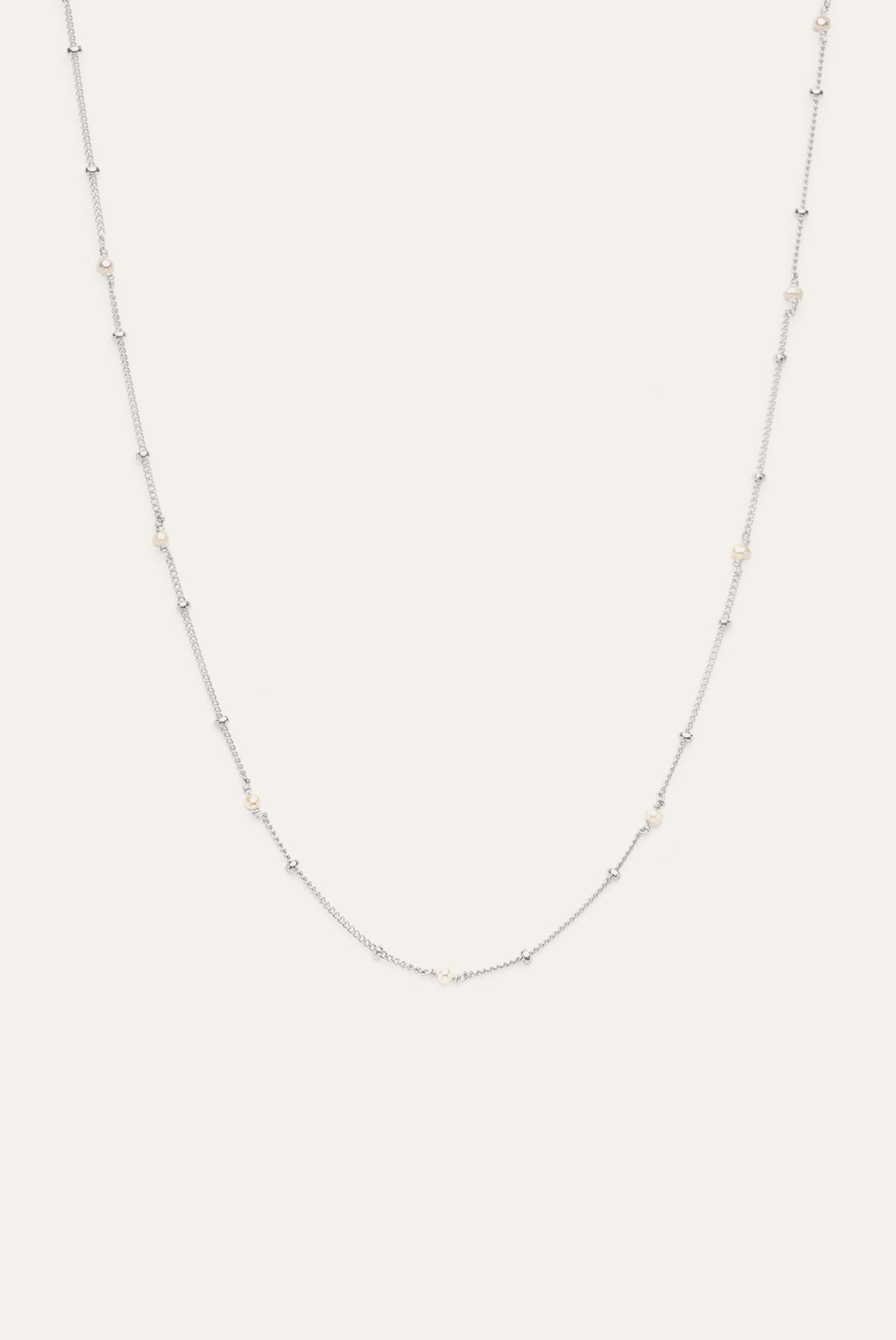 The satellite necklace is composed of a fine beaded chain on which are distributed pearly white cultured pearls.