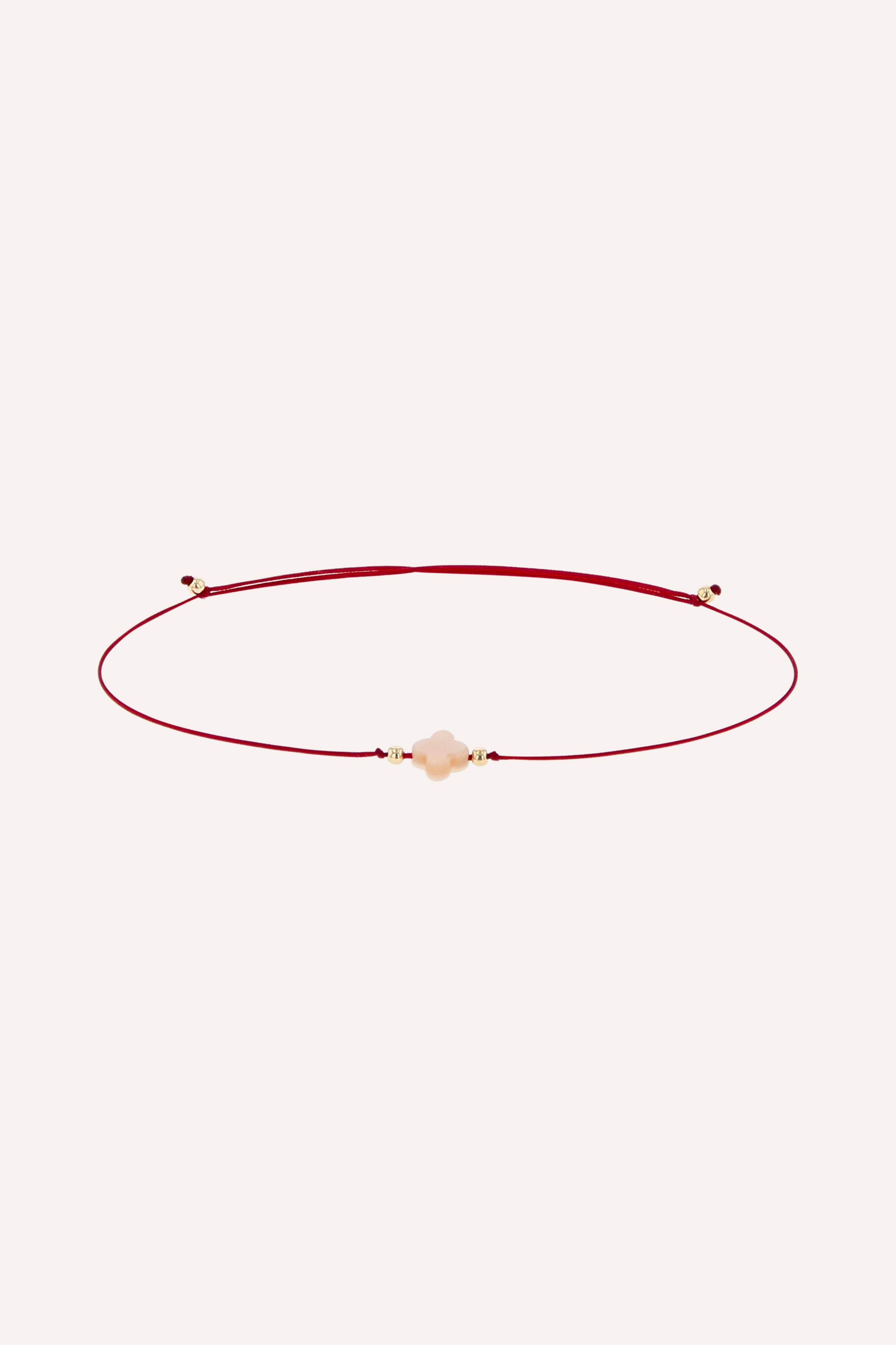 Gold plated 14 carats. Mother of pearl. Polyester cord. Adjustable size: 10-20 cm.