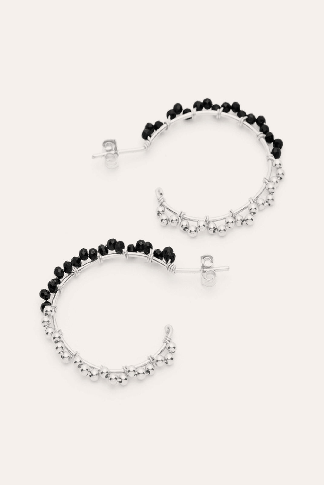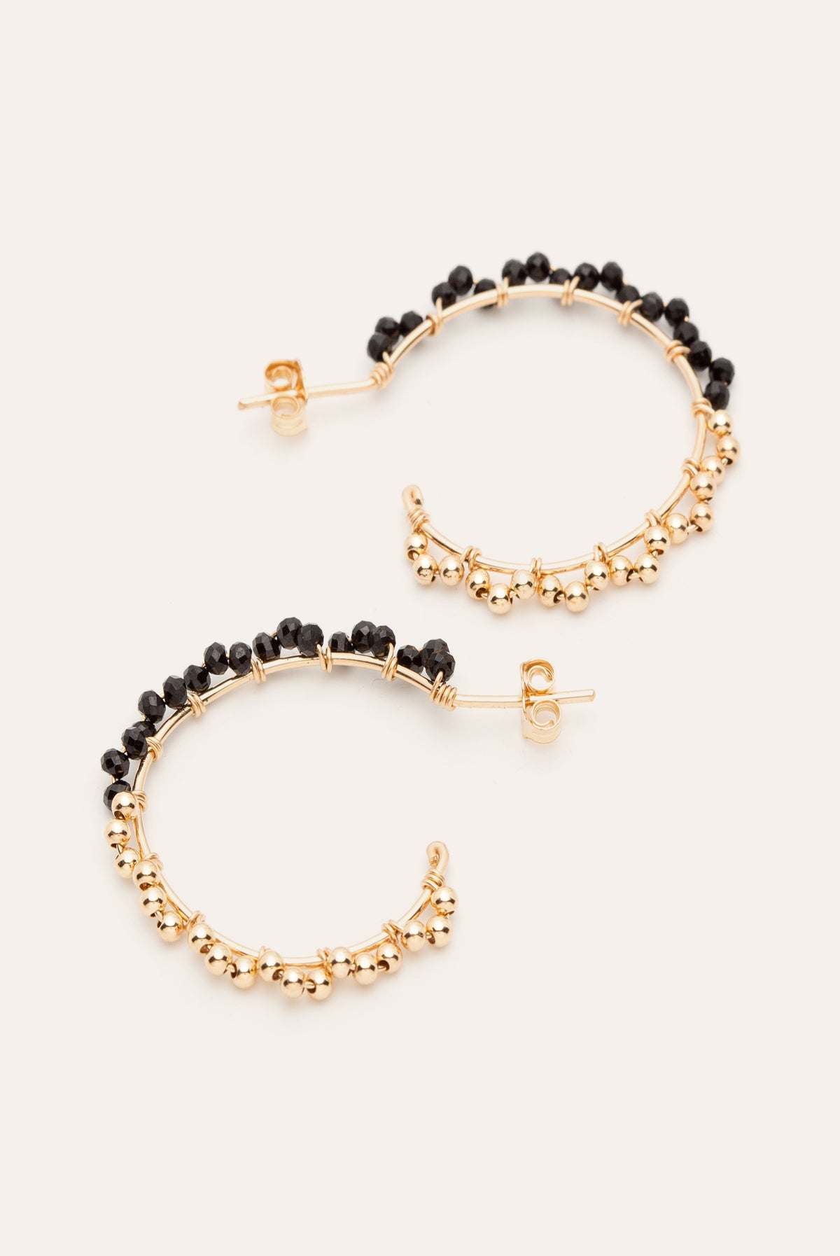 The lace creoles are woven with an accumulation of 2mm faceted stones and small gold beads. They are available in gold-filled or silver plated.