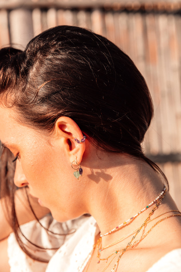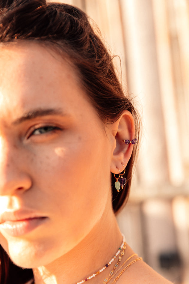 This fake piercing from the Summer Of Love collection is composed of a line of 4.5mm amethyst stones and small gold or silver beads.