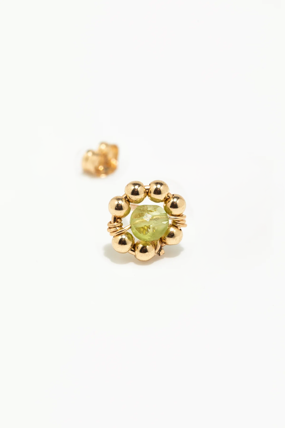 A pearly flower is set around a precious stone, a vibrant peridot. Fresh and elegant, the Daisy stud earrings illuminate the wearer's posture with a modern touch.