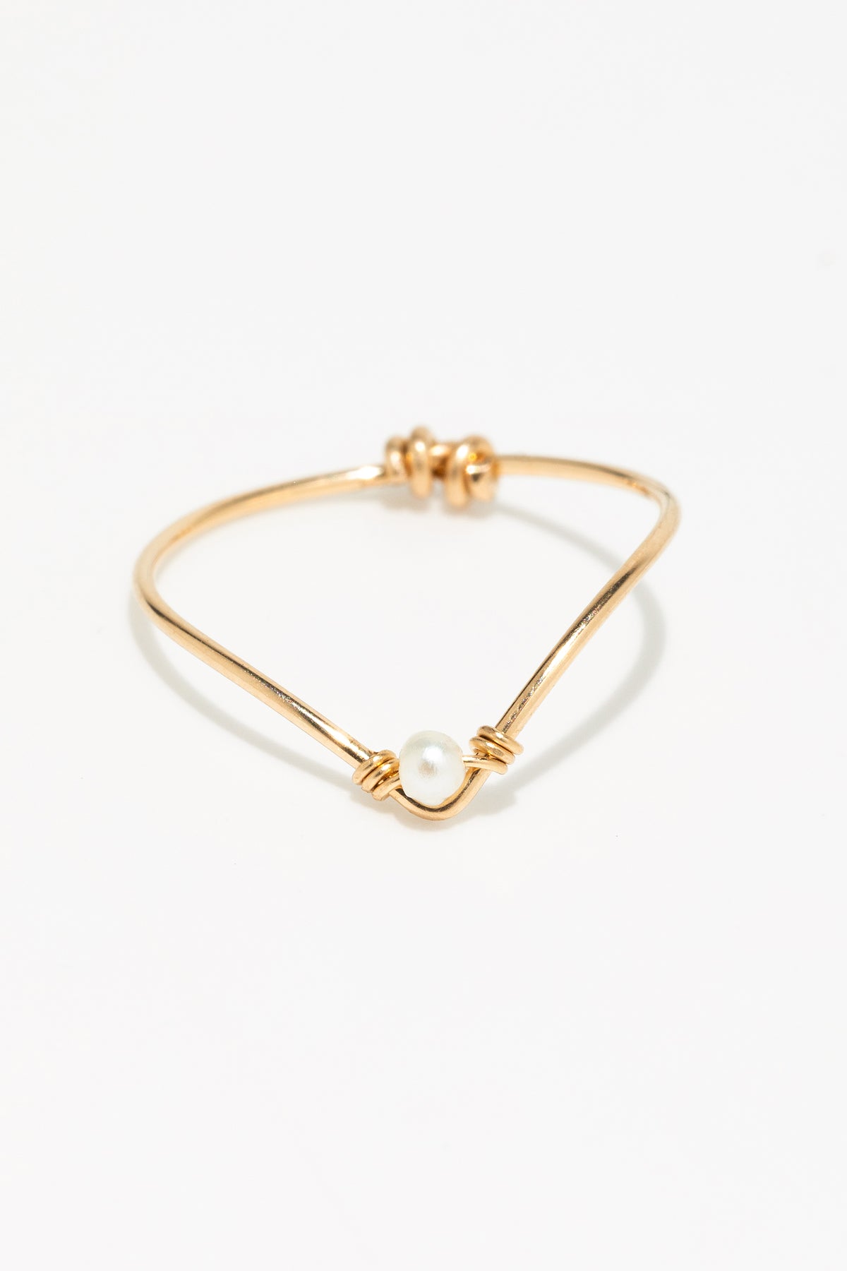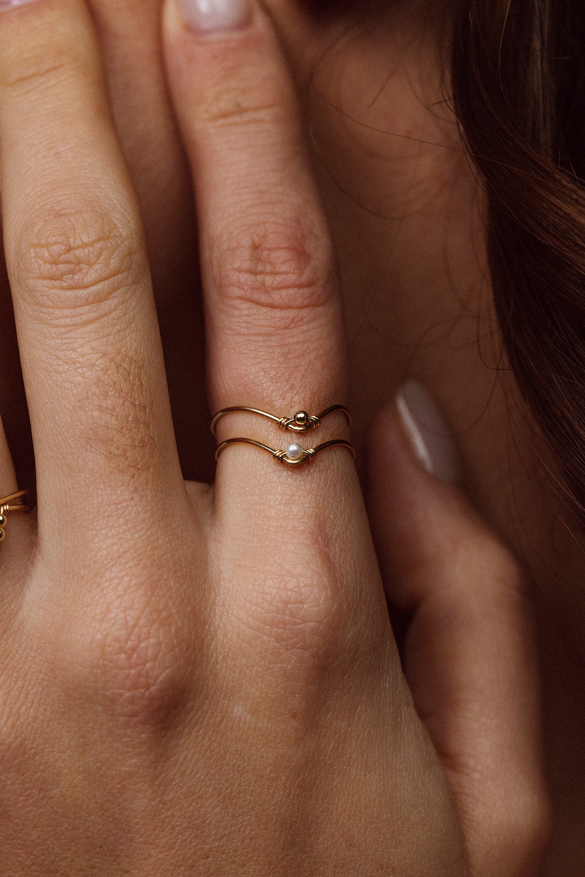 Une ligne d’or fine et organique, ponctuée d’une perle de culture lumineuse. Cette bague minimaliste épouse le doigt avec douceur et se porte comme un bijou seconde peau.