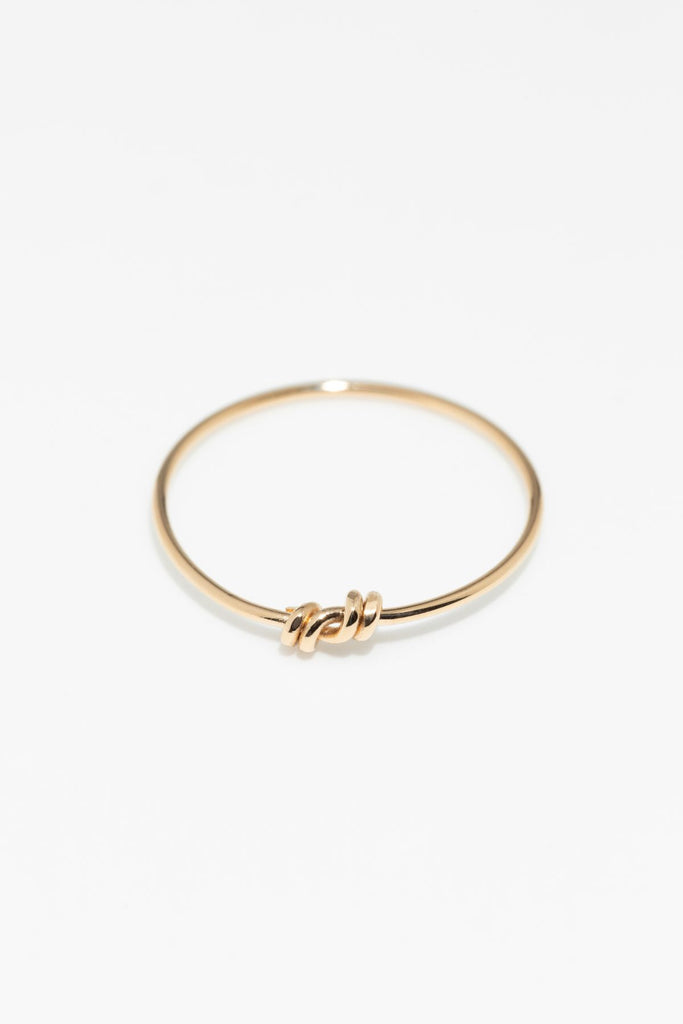 Bijou intemporel, la bague Essentiel se définit par son minimalisme : un fil d’or noué dans le nœud identitaire de YAY. Symbole de lien et de délicatesse, ce détail signature incarne pleinement l’ADN de la maison.