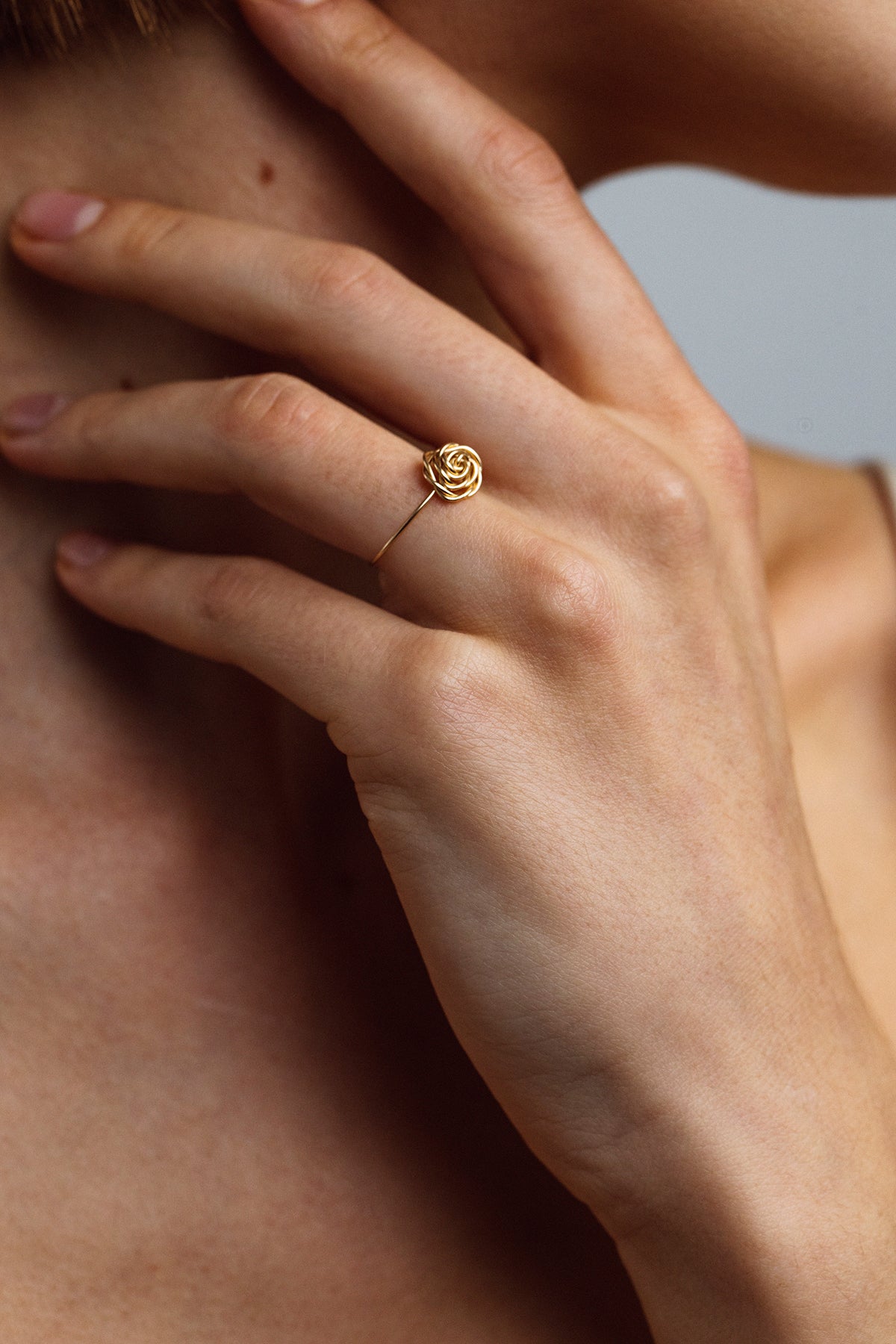 Un fin fil d’or, patiemment torsadé et façonné par nos artisans bijoutiers, se métamorphose en une rose précieuse à fleur de peau.