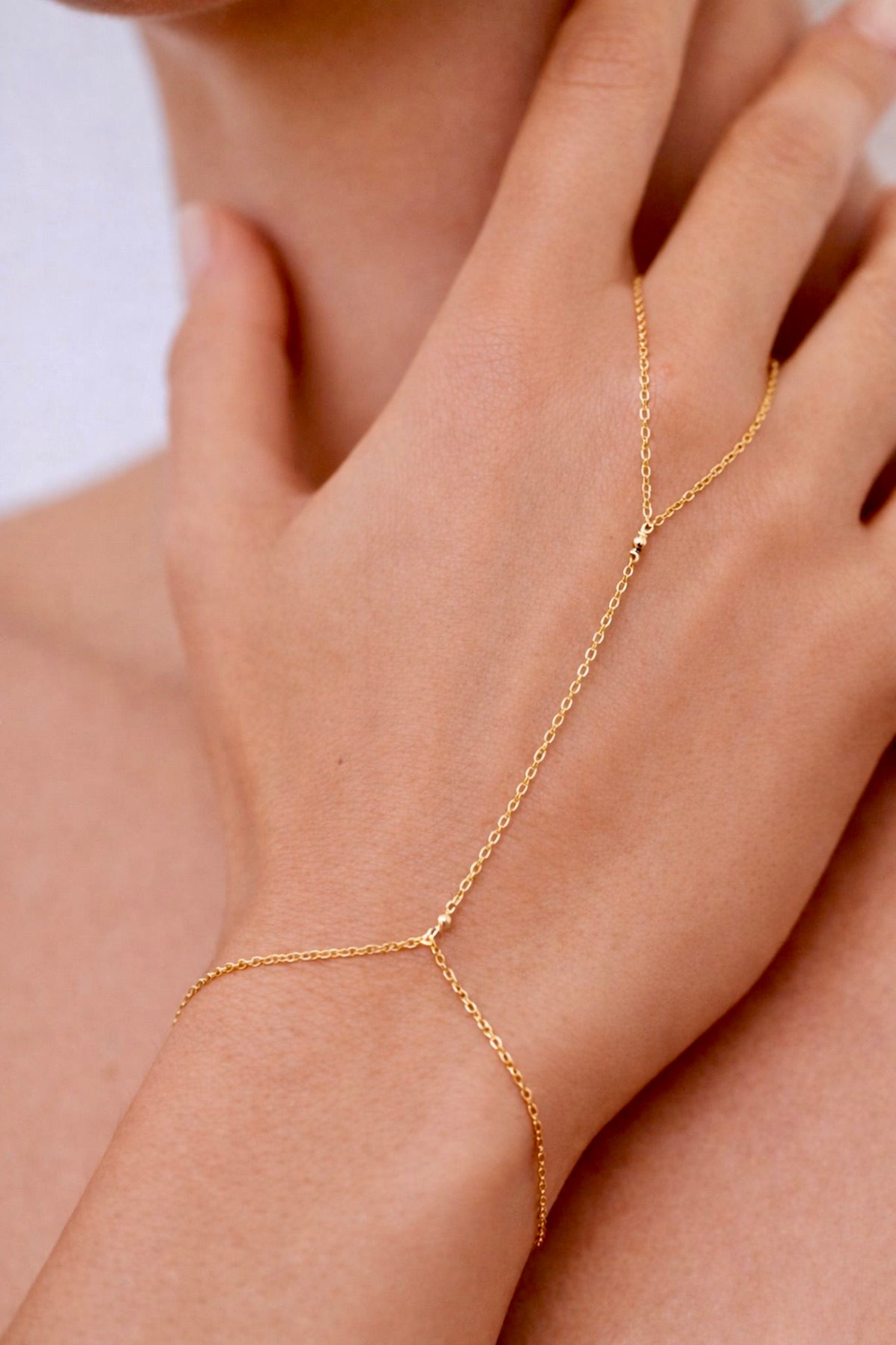 Une fine chaîne enlace tour à tour le doigt puis le poignet. Conçu pour être porté au quotidien, le bijou de main chaine conjugue élégance et confort.