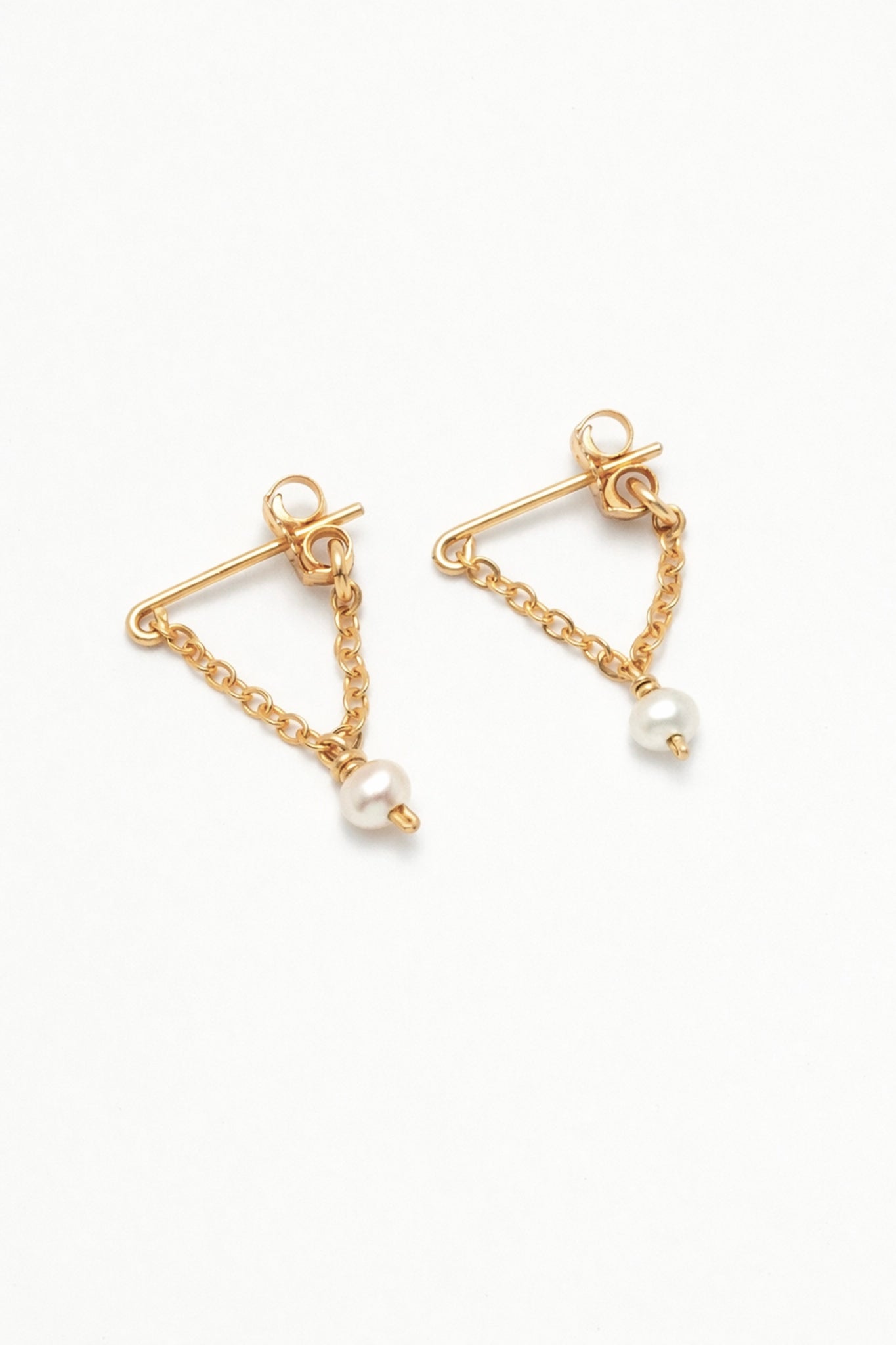 Bijou iconique de la maison, les boucles d'oreilles chaînette Anna se parent d'une perle de culture nouée sur une fine chaîne d'or.