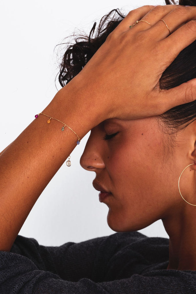 Le bracelet pampilles Sofia est une pièce délicate et personnalisable, parfaite pour sublimer votre poignet avec une touche de couleur. Confectionné en or 750‰, ce bracelet raffiné est orné de cinq saphirs, disponibles dans les couleurs de votre choix. Chaque pampille de saphir apporte une note précieuse et vibrante, pour un bijou élégant et unique.