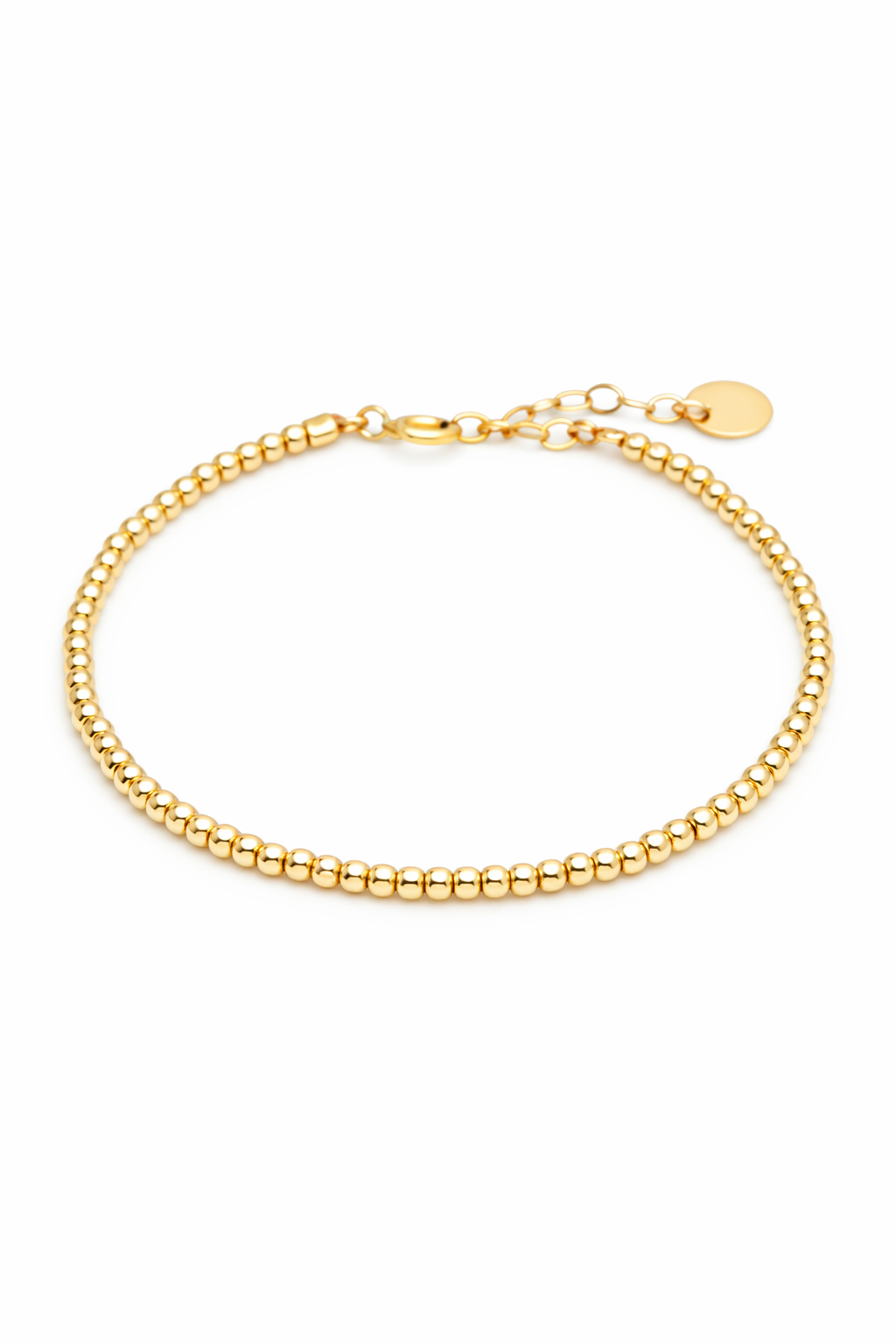 Créé à partir d'un enfilage de perles lisses d'or, le bracelet Queen est un intemporel qui pourra servir de base à tous vos looks bracelets.