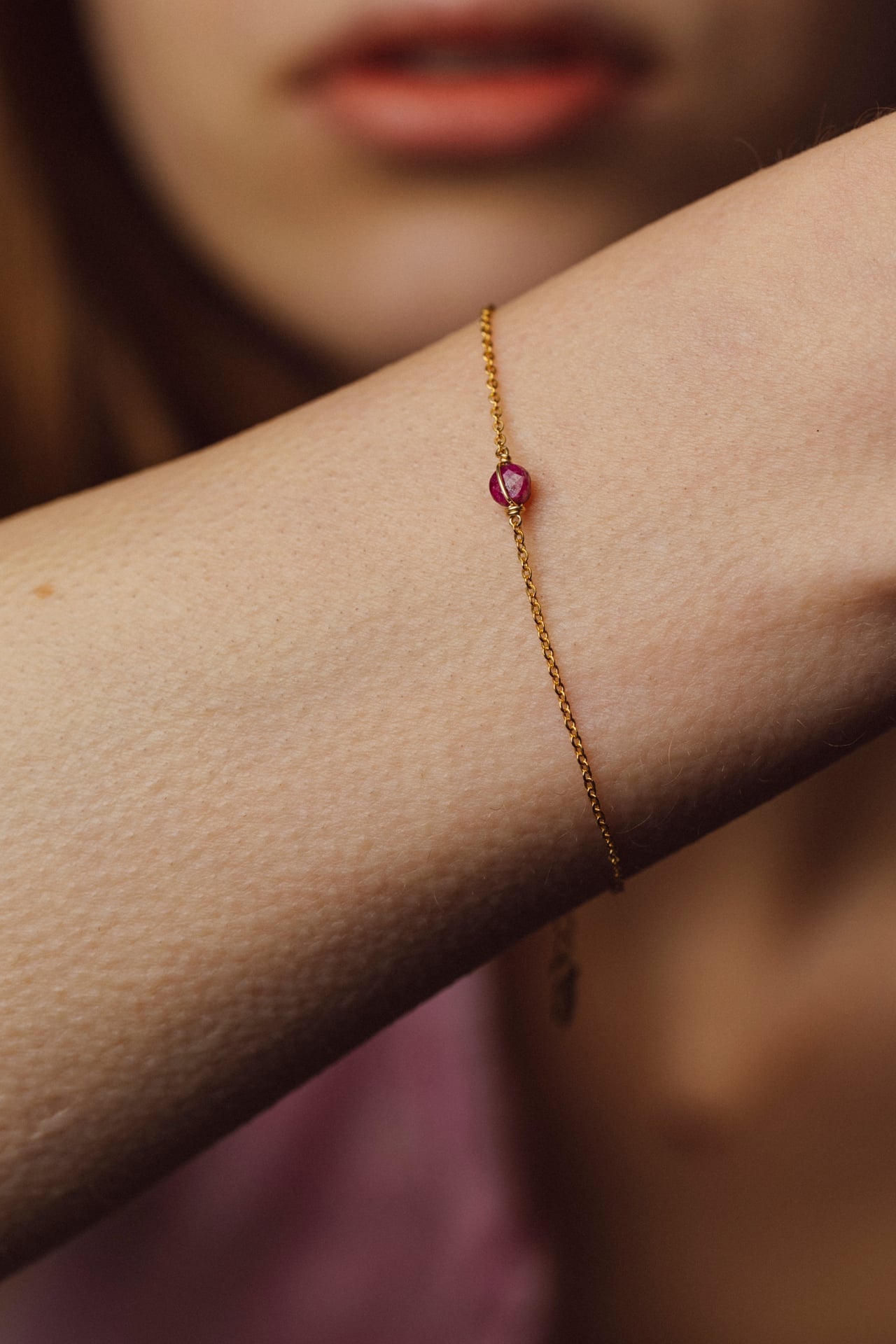 Minimalisme et structure, le bracelet Stella est une pièce incontournable au design léger et aérien. Une pierre fine, taillée en facettes, se noue sur une délicate chaine d'or qui habille le poignet avec élégance et modernité.