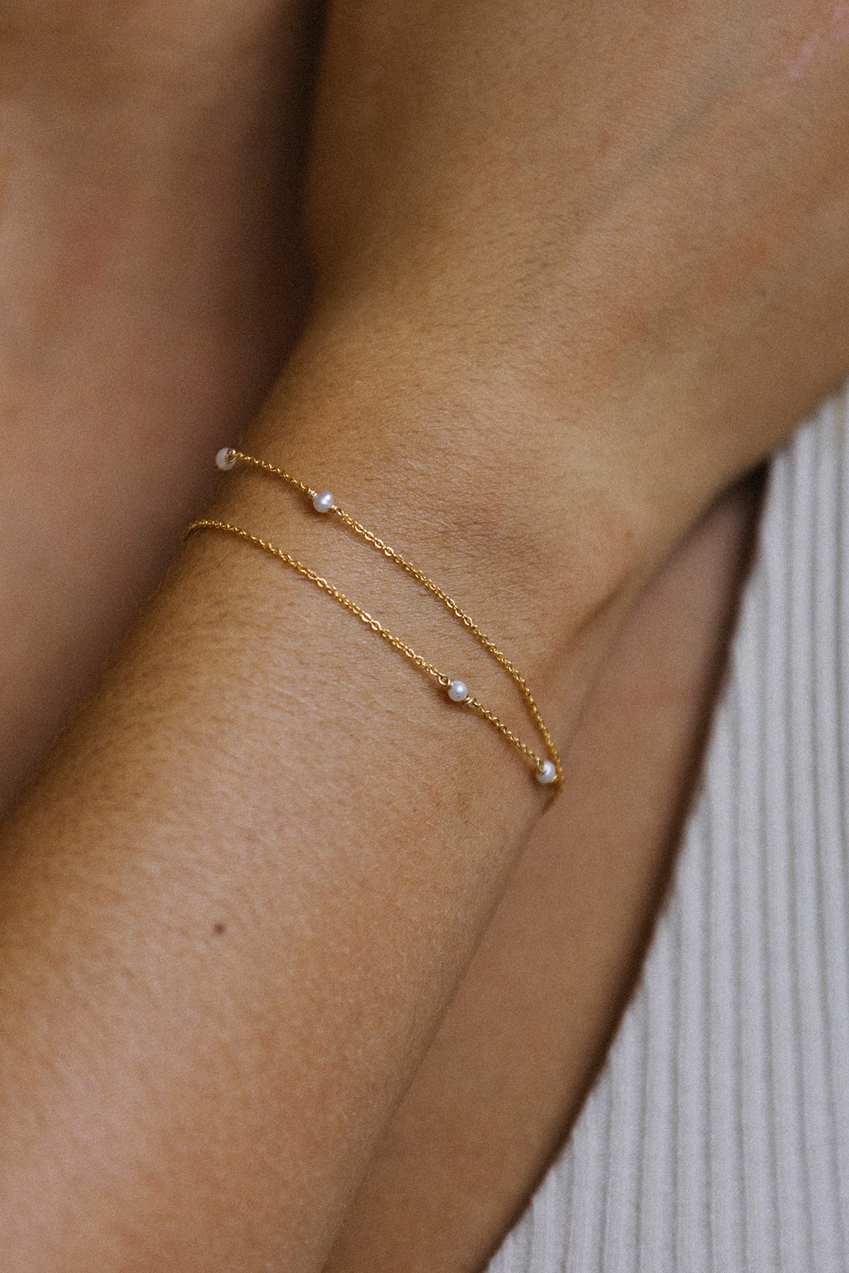 Effet de répétition, le Collier-Bracelet Satellite est pensé en mouvement. Composé d'une fine chaine d'or, il s'anime avec élégance grâce au nouage périodique de perles de culture. Multi-positions, ce bijou habille le cou ou le poignet d'un simple ou double tour.
