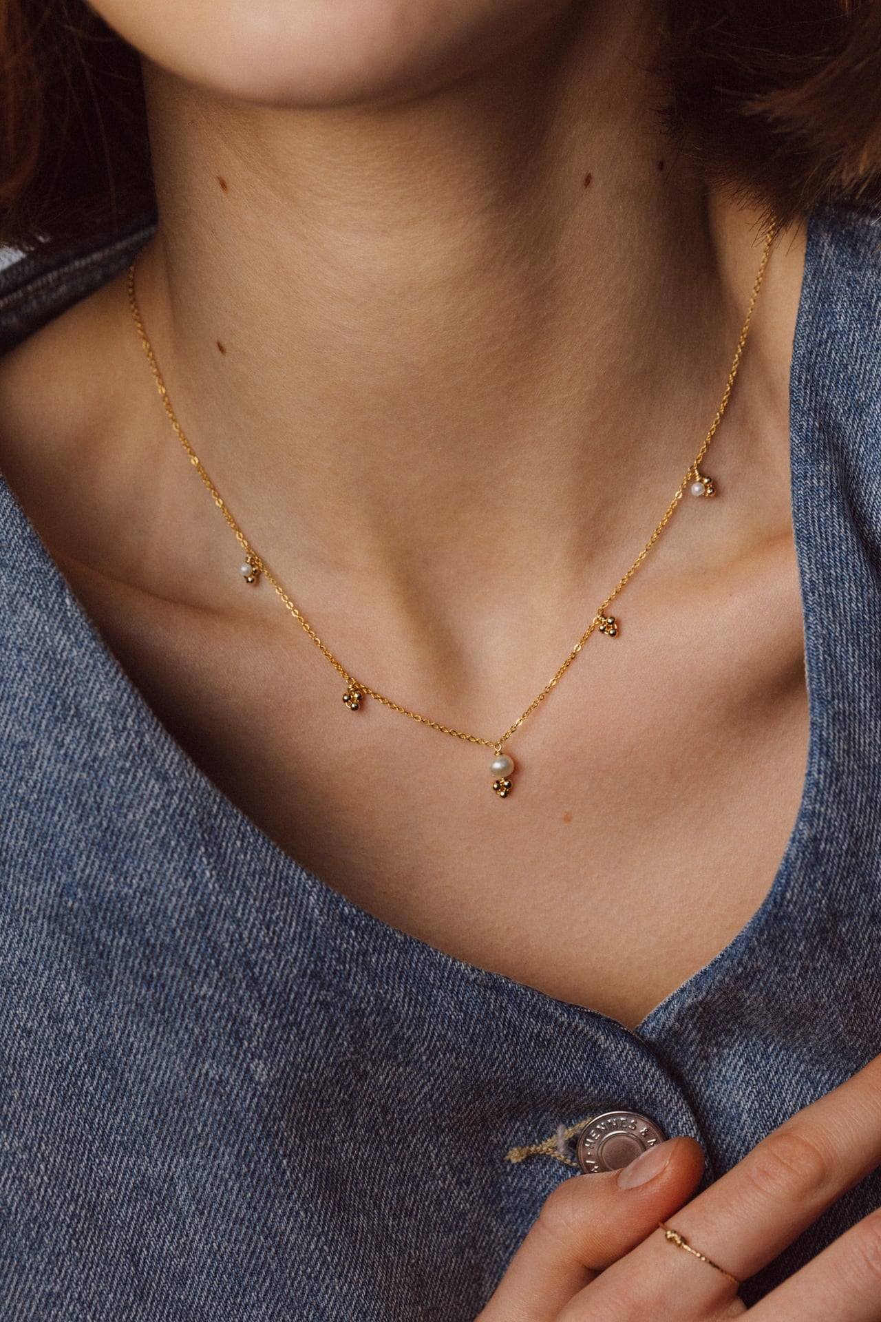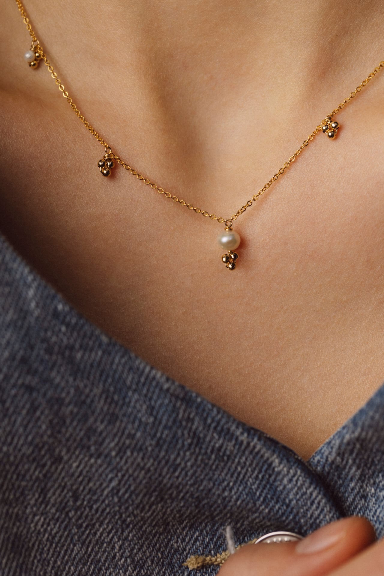 Ce collier Gaïa mêle la puissance de la perle de culture à la délicatesse de petits grelots fixes, comme autant de grains de sable qui rythment la chaîne avec légèreté. La pampille en pierre naturelle, surmontée d’un grelot, capte la lumière et apporte une touche subtile et raffinée.