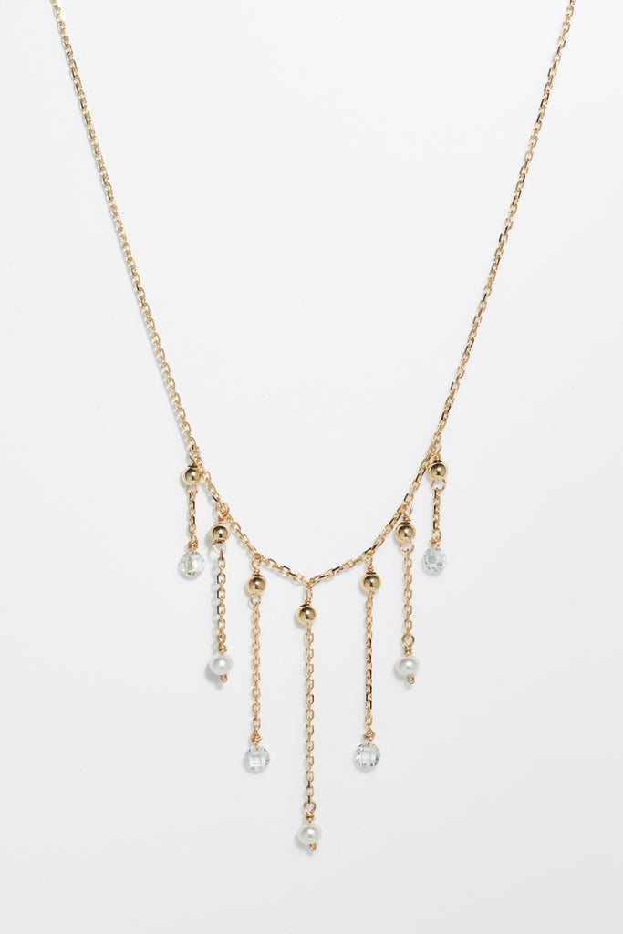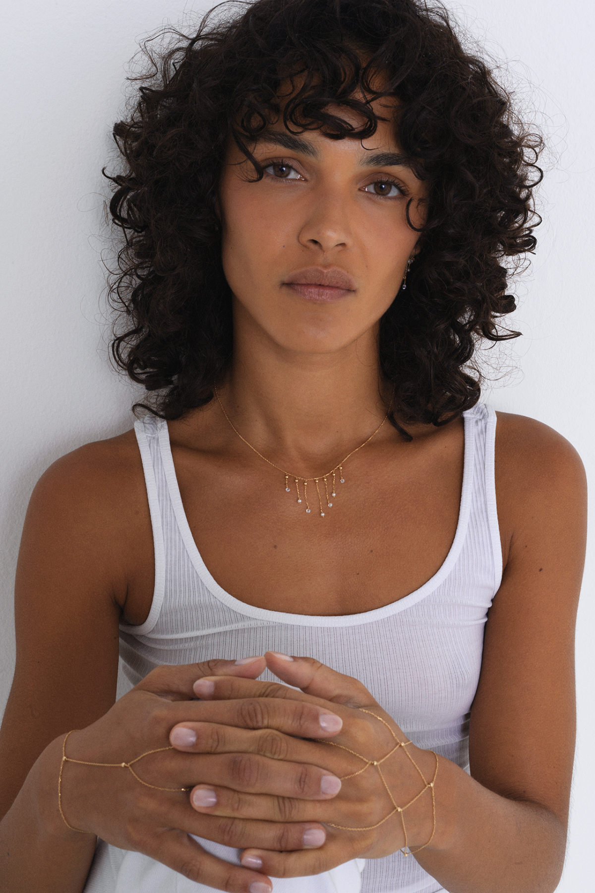 Le collier Luna dévoile un jeu de chaînes fines suspendues avec grâce sur le devant, alternant diamants scintillants et perles de culture lumineuses. Chaque mouvement capte la lumière pour sublimer délicatement le décolleté. À porter seul pour une élégance raffinée ou en accumulation pour un style unique et personnalisé.