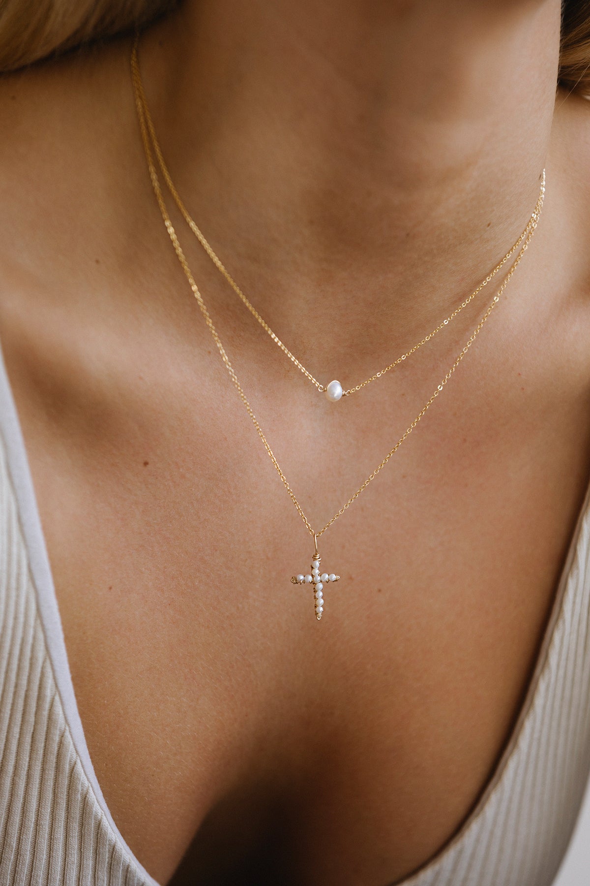 Minimalisme et structure, le collier Stella est une pièce incontournable au design léger et aérien. Une perle naturelle nouée sur une délicate chaîne d’or habille le cou avec élégance et modernité.