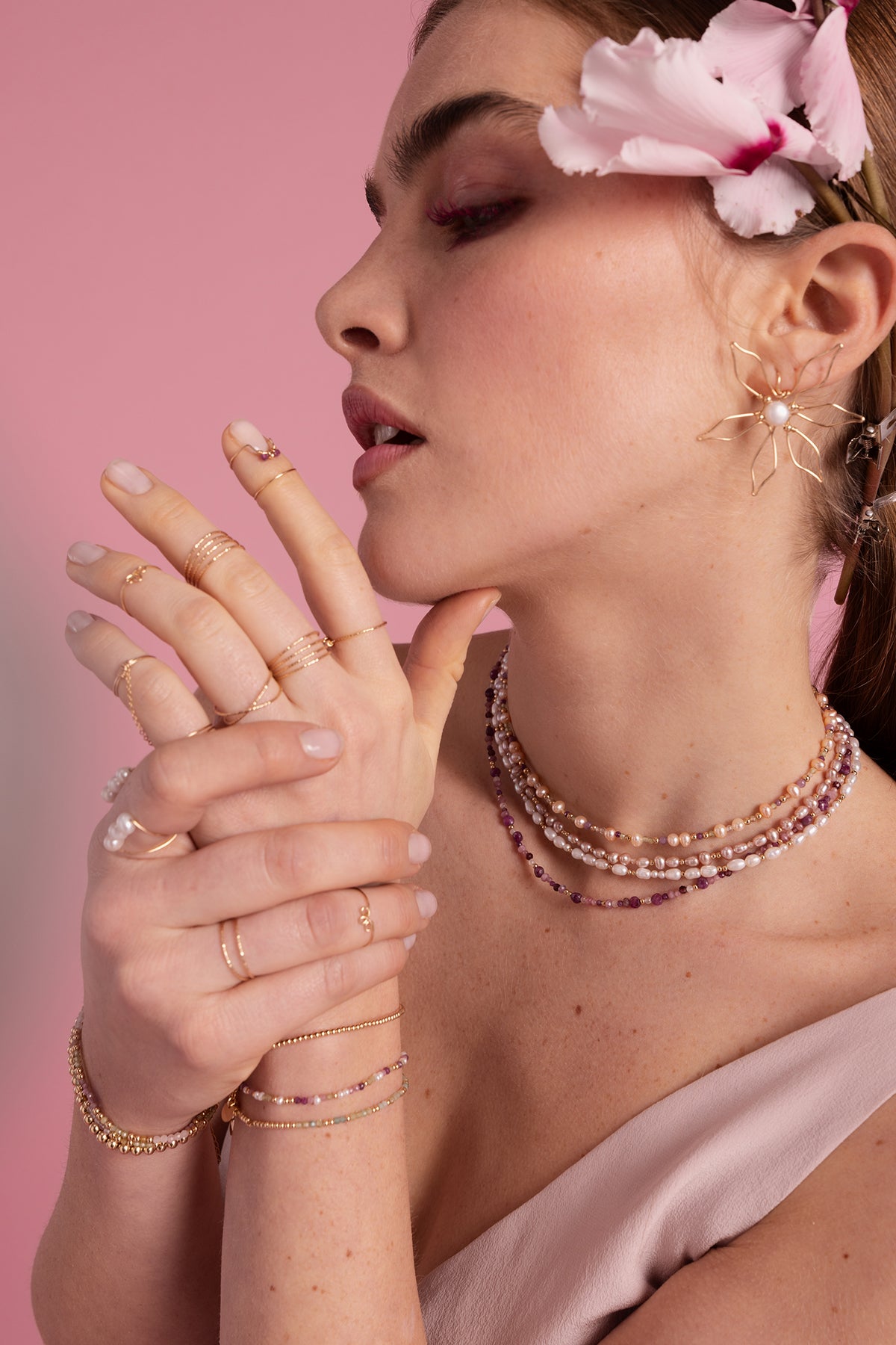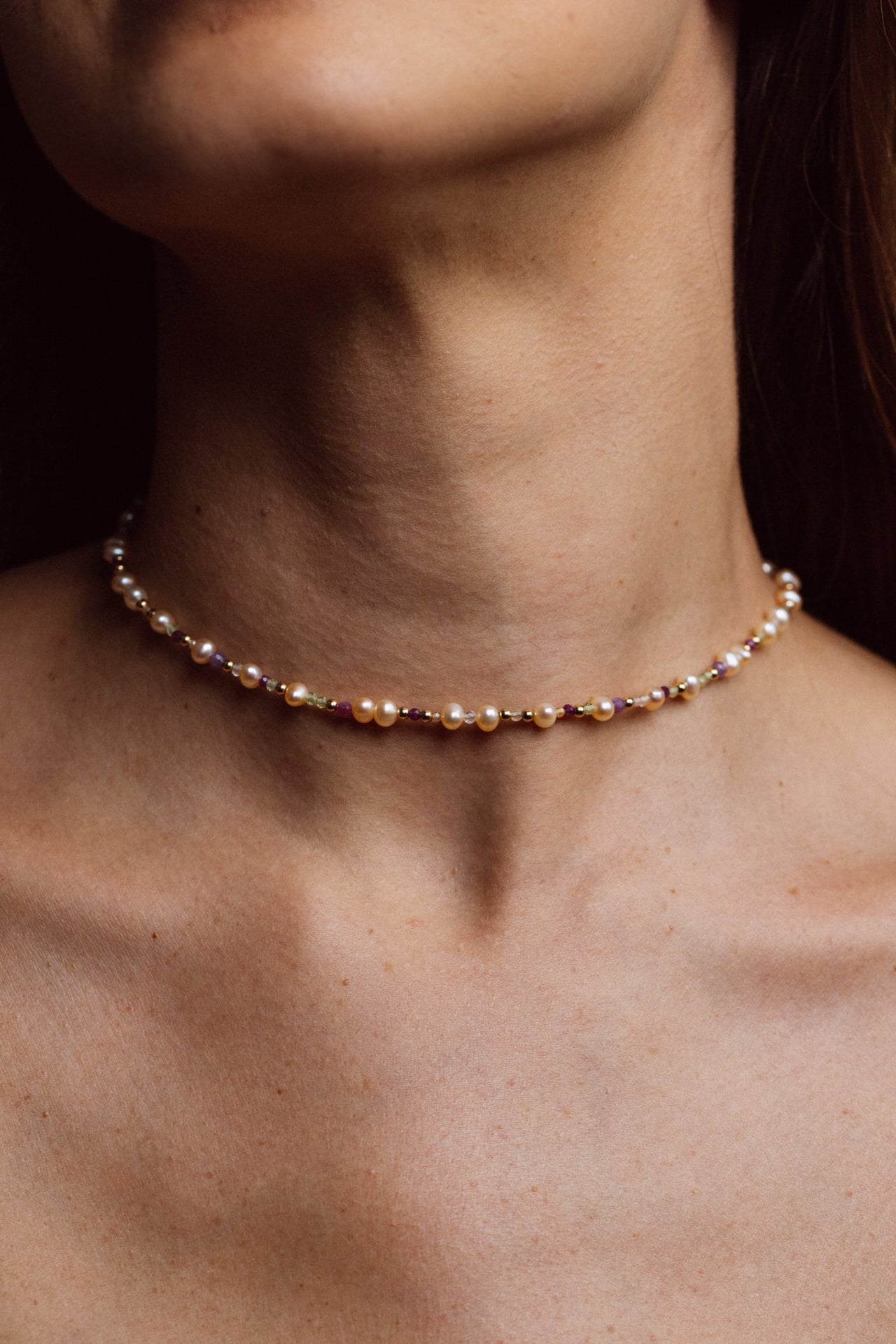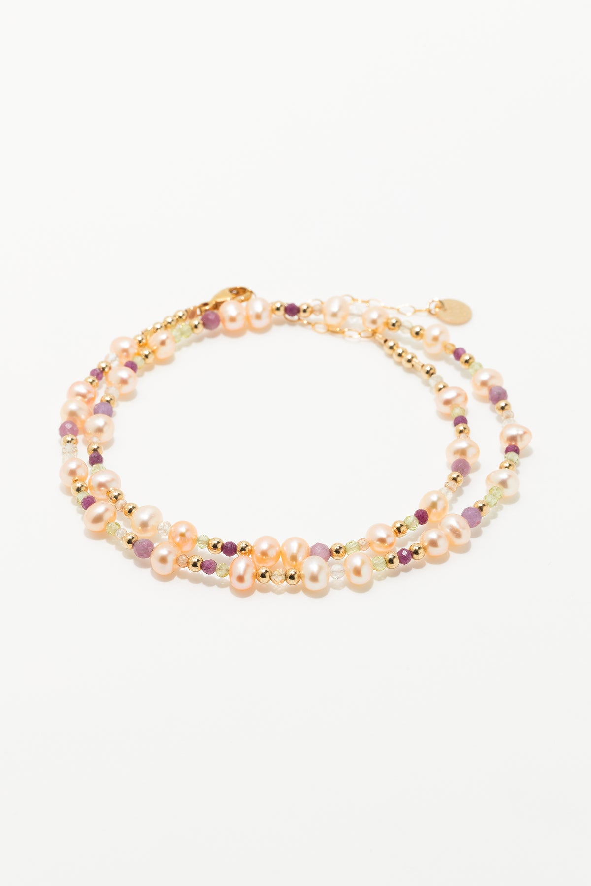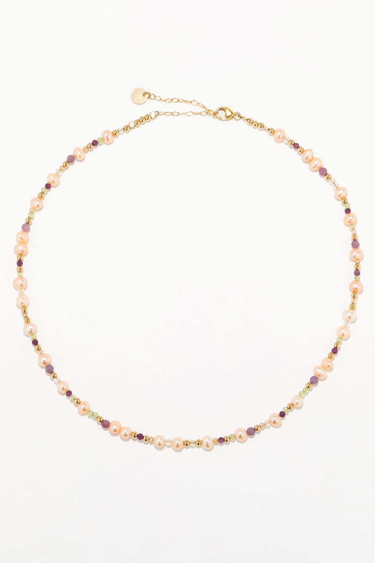 Pierres : Péridot, Tourmaline, Perle de culture rose, Rubis