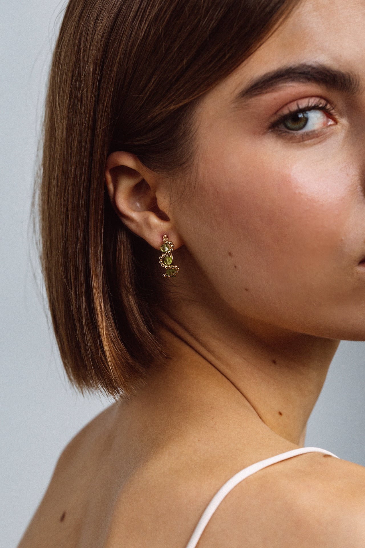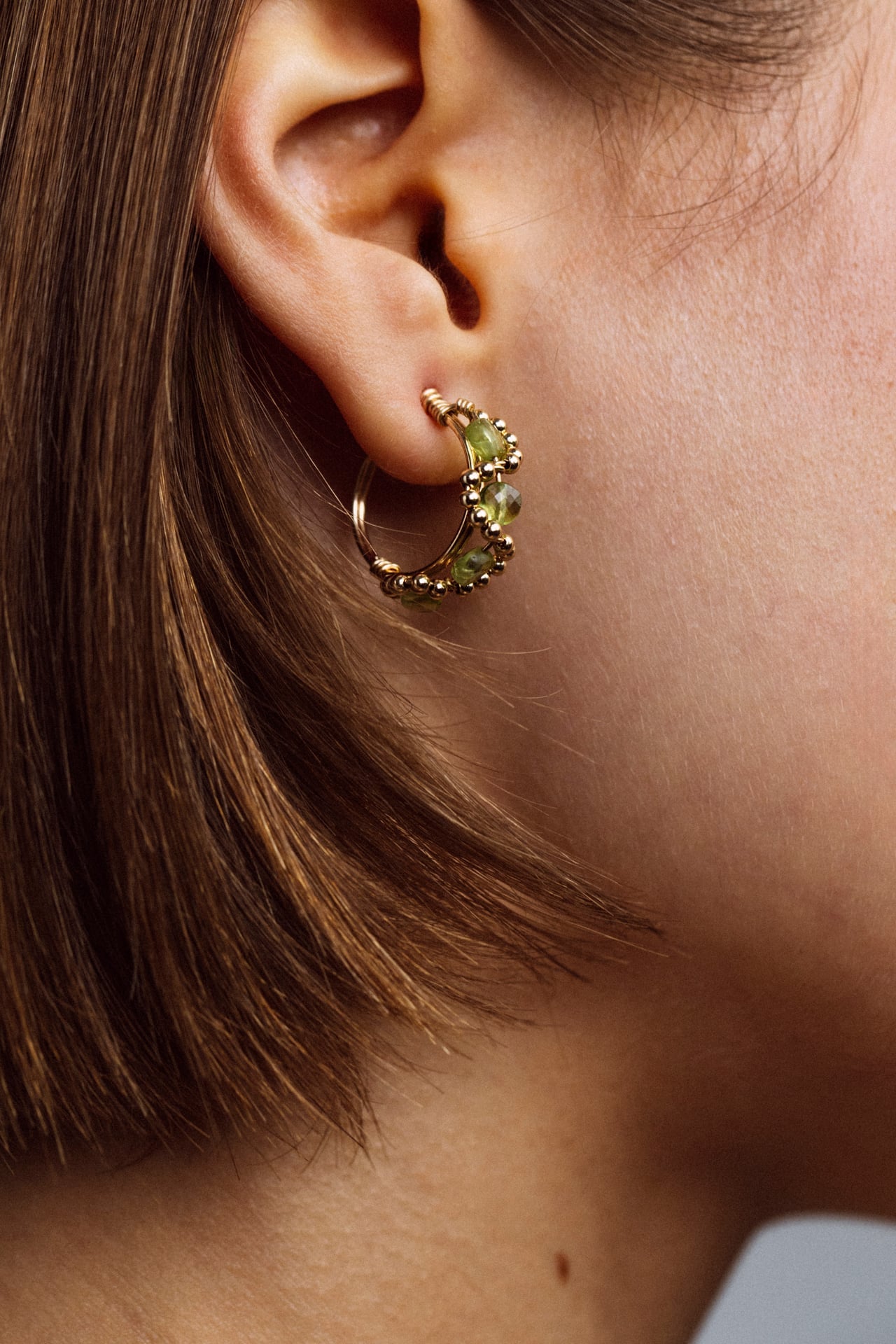 Les créoles Mira s’inspirent de la fraîcheur et de la légèreté d’un jardin en fleurs. Leur courbe harmonieuse, ponctuée de péridots éclatants, rappelle un bouquet délicat suspendu au creux de l’oreille. Un bijou raffiné et féminin, pensé pour habiller l’oreille avec élégance et apporter une touche de modernité et de délicatesse à chaque tenue. Chaque pièce YAY est unique, façonnée à la main dans nos ateliers parisiens 🇫🇷.