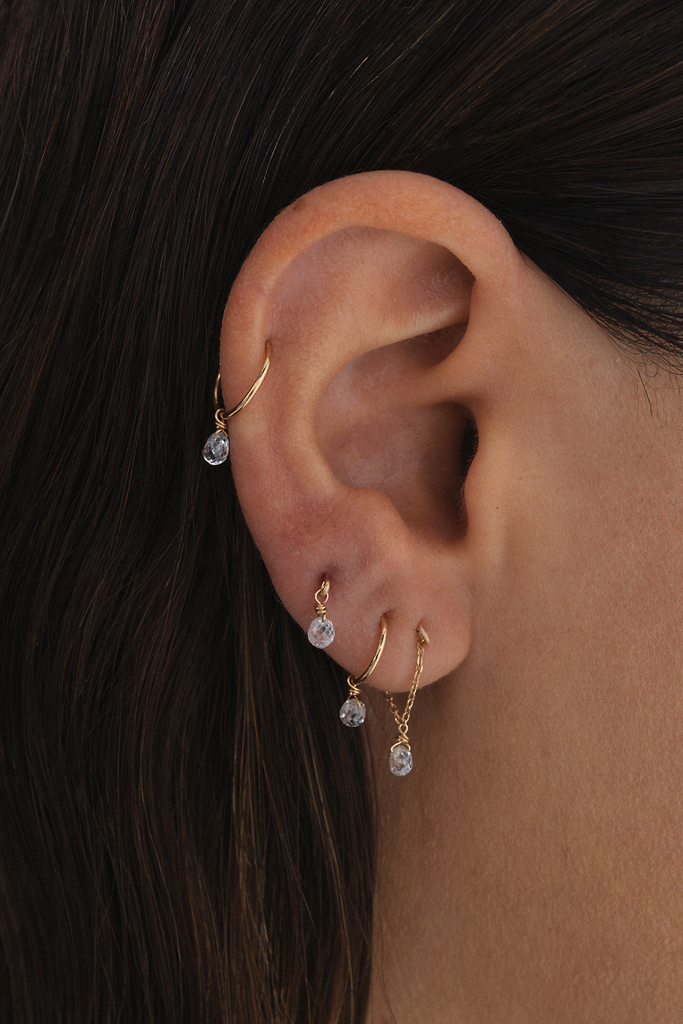 Les mini créoles Sia en or 18 carats révèlent une ligne pure et raffinée, sublimée par un diamant blanc délicatement suspendu, apportant une touche lumineuse à chaque mouvement.