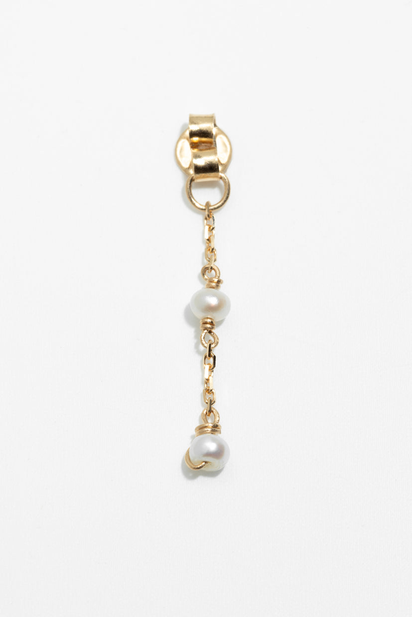 Un papillon en or 18 carats supporte une fine chaîne délicatement enlacée, ponctuée de deux perles de culture. Suspendu au dos de l’oreille, ce bijou discret et raffiné ajoute une touche unique et moderne à chaque mouvement. À porter seul pour un détail subtil ou en accumulation pour un style contemporain et sophistiqué.
