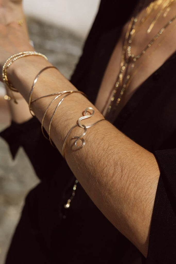 Jonc serpent Mina, travaillé à la main avec une finesse artisanale, ce bijou épouse le poignet avec une allure fluide et élégante. Sa forme sinueuse et délicate évoque la souplesse et la force, incarnant un style à la fois moderne et intemporel. Chaque pièce YAY est façonnée sur commande par un artisan de notre atelier, pour vous. 🇫🇷