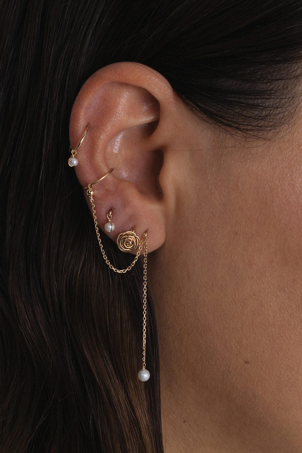 Apportez une touche de douceur à votre Hélix avec le piercing Tara en or 18 carats, orné d’une perle de culture suspendue qui danse subtilement à chaque geste.