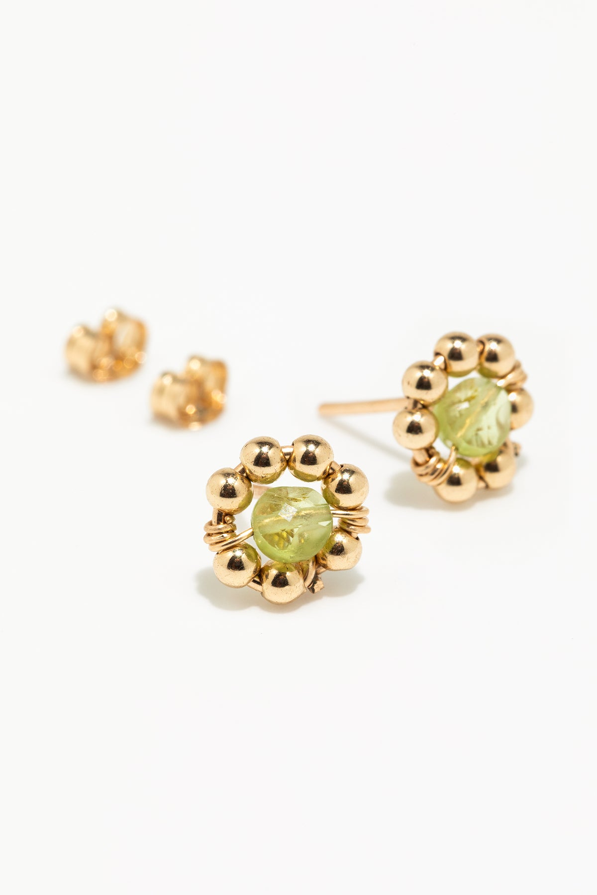 Autour d’une pierre fine, un péridot vif, se dessine une fleur perlée. Fraîches et élégantes, les puces Daisy illuminent le port de tête avec modernité.