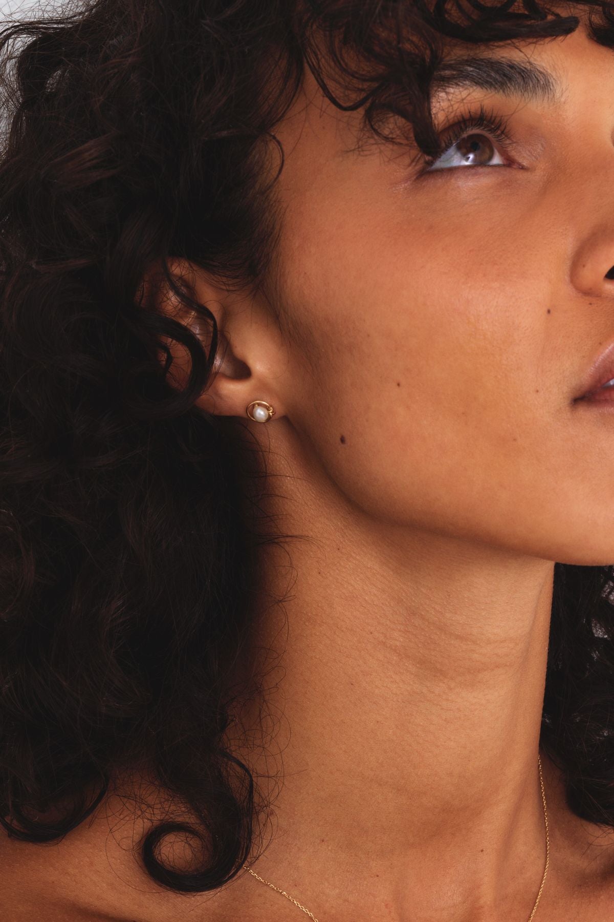 Interprétation du solitaire, les puces Swan mettent à l'honneur une perle de culture délicatement tissée sur un précieux fil d'or 18 carats.